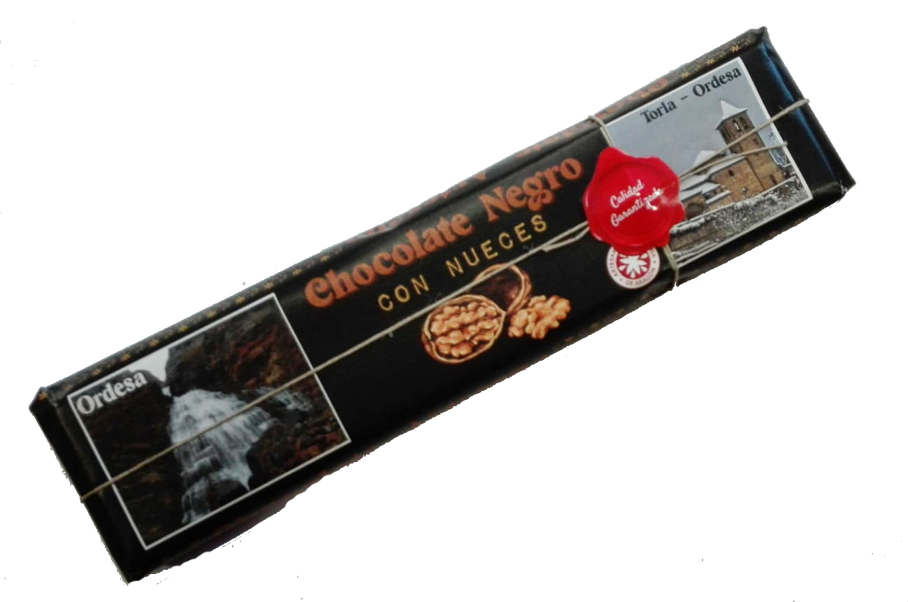 Ingredientes: Pasta de cacao, azúcar, nueces 12%, emulgente (lecitina de soja), vainilla, cacao 60%.